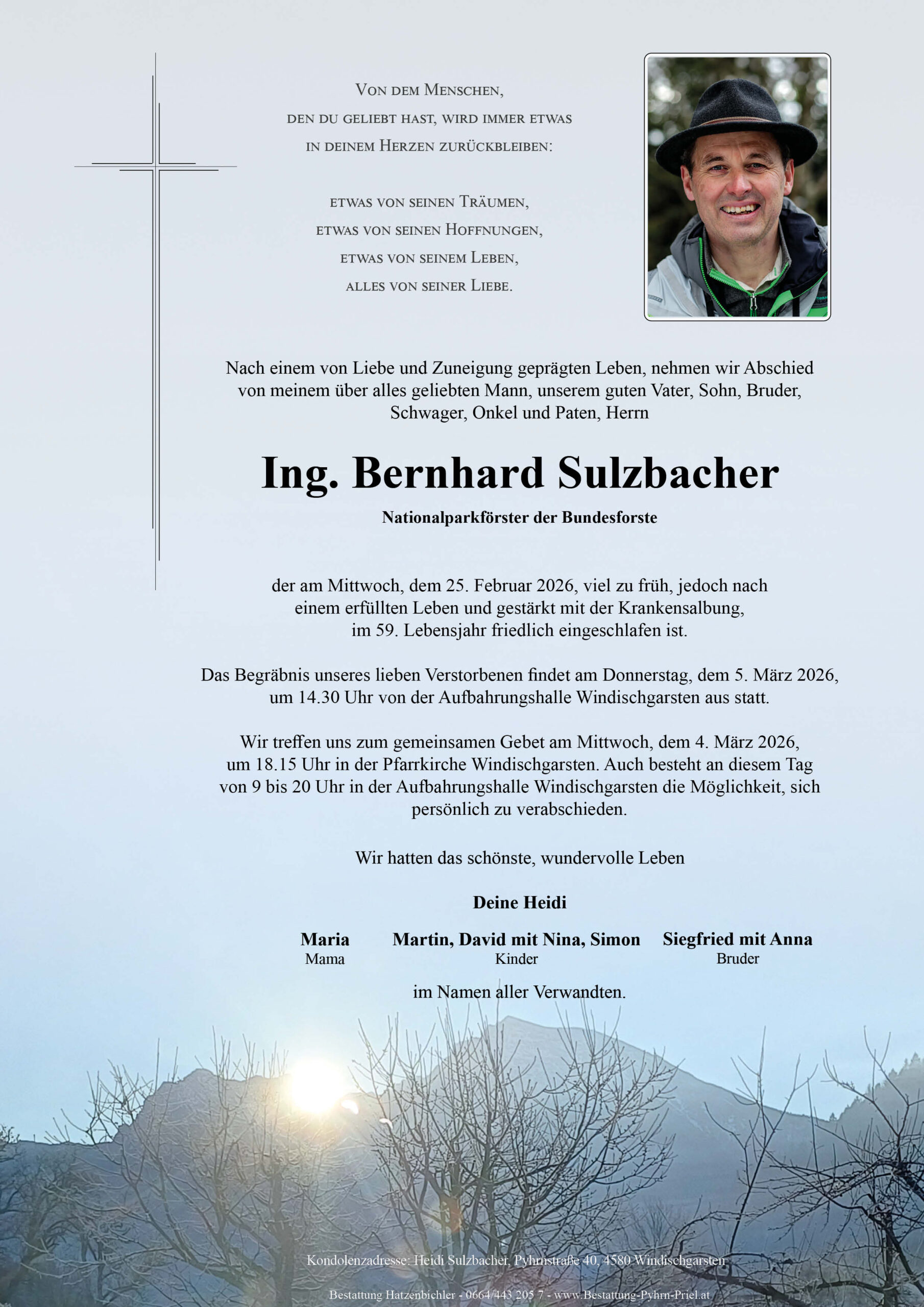 Nach der einstimmigen Entscheidung des Windischgarstner Gemeinderats vom 2. Oktober 2025 dürfen wir offiziell die Nachfolge der Bestattung Perner bekannt geben. Mit der Pensionierung von Adi Perner geht eine Ära zu Ende …