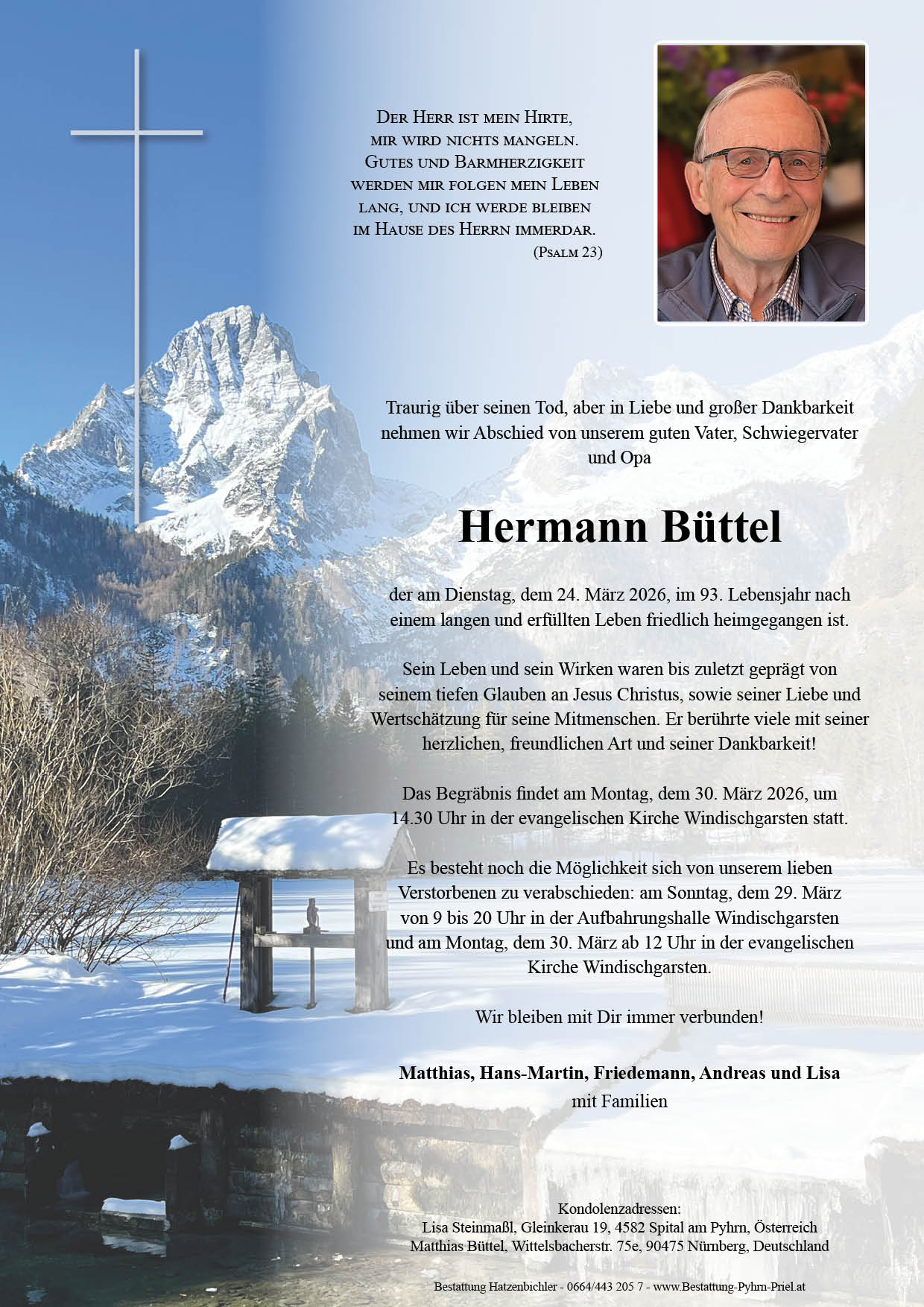 Nach der einstimmigen Entscheidung des Windischgarstner Gemeinderats vom 2. Oktober 2025 dürfen wir offiziell die Nachfolge der Bestattung Perner bekannt geben. Mit der Pensionierung von Adi Perner geht eine Ära zu Ende …